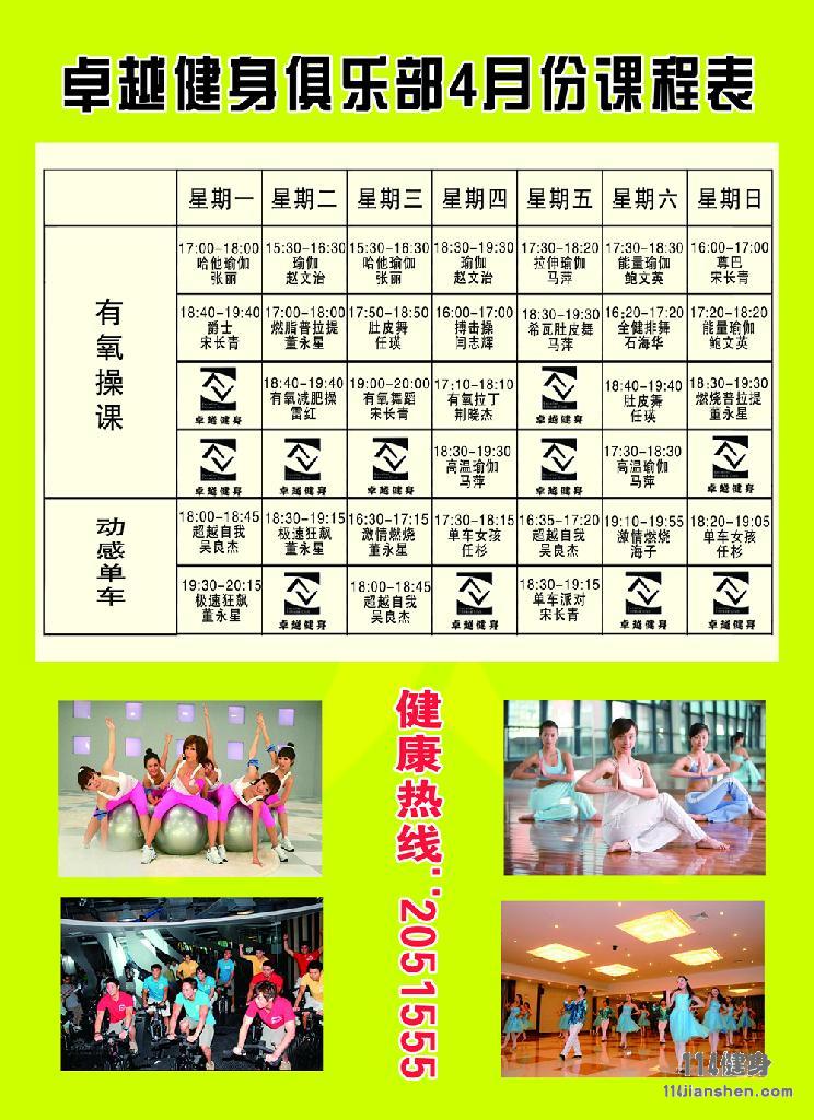 卓越健身新课程表